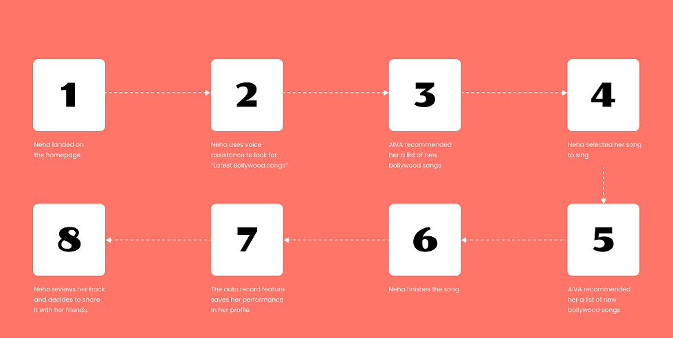 Neha wants to use AIVA to sing and record a Bollywood song. She is going to use voice assistance and english lyrics for her performance.